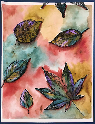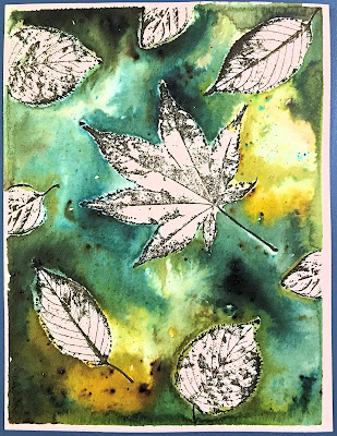 I want some critique from you. On the blue/green leaf sample, do you think I should color in the leaves in something like a light yellow/green or leave them the cream of the watercolor paper?